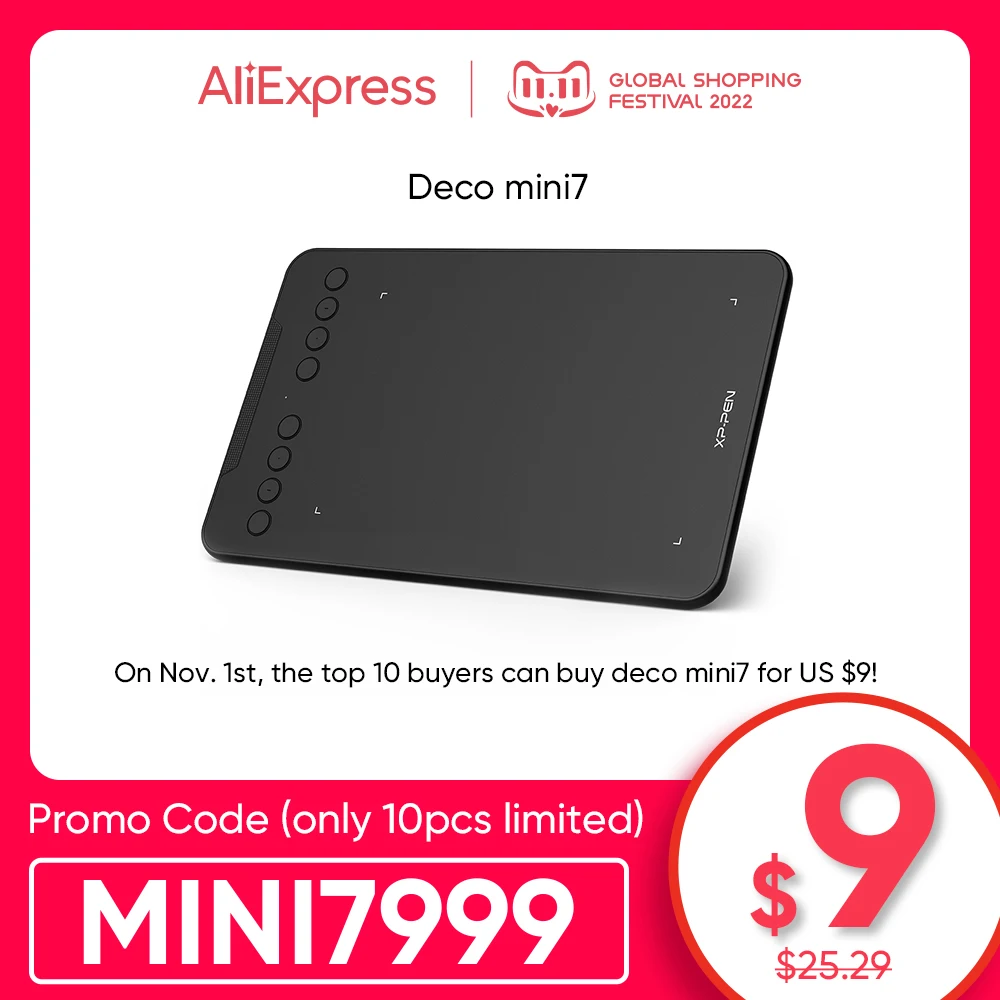 XP-Pen Deco01 Mini Graphic Tablet Deco mini 7 Digital Drawing Tablet 7*4 inch 8 Express Keys Support Tilt Android Mac Windows